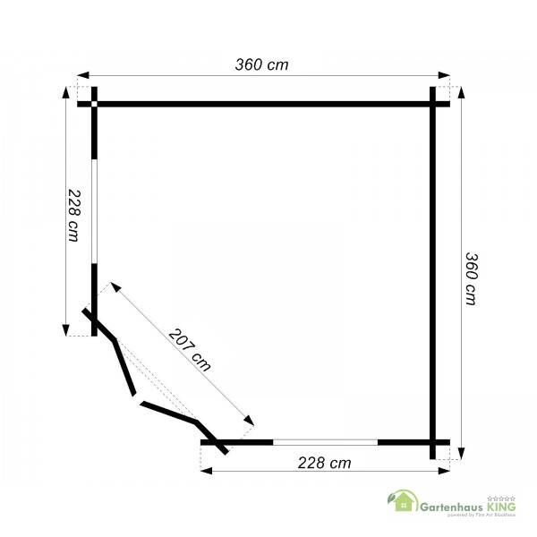 - Bohlenaußenmaß 360 x 360 BxT cm