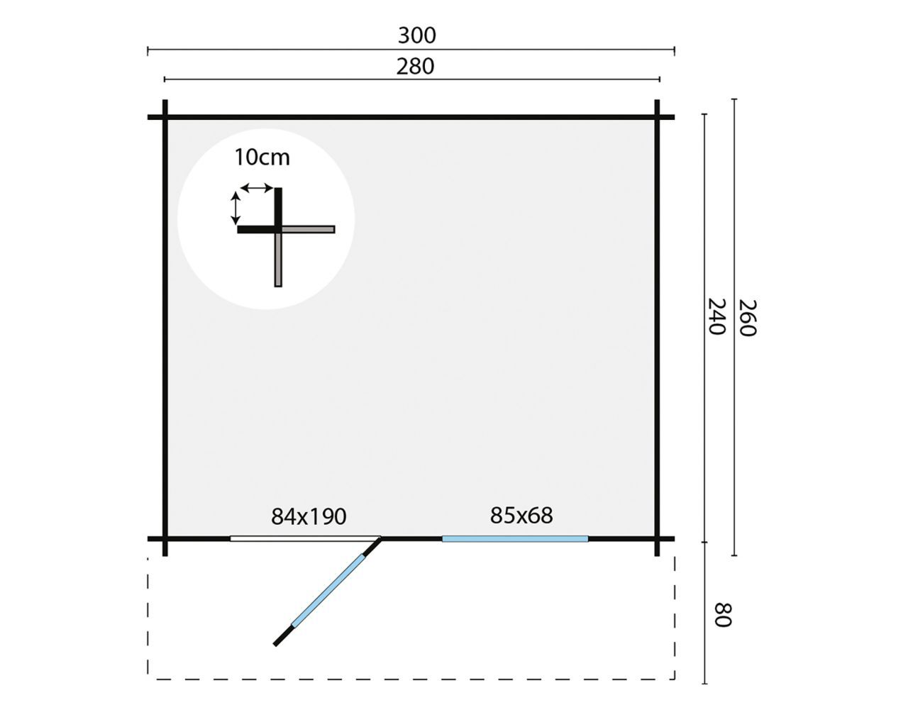 - Bohlenaußenmaß 300 x 260 BxT cm