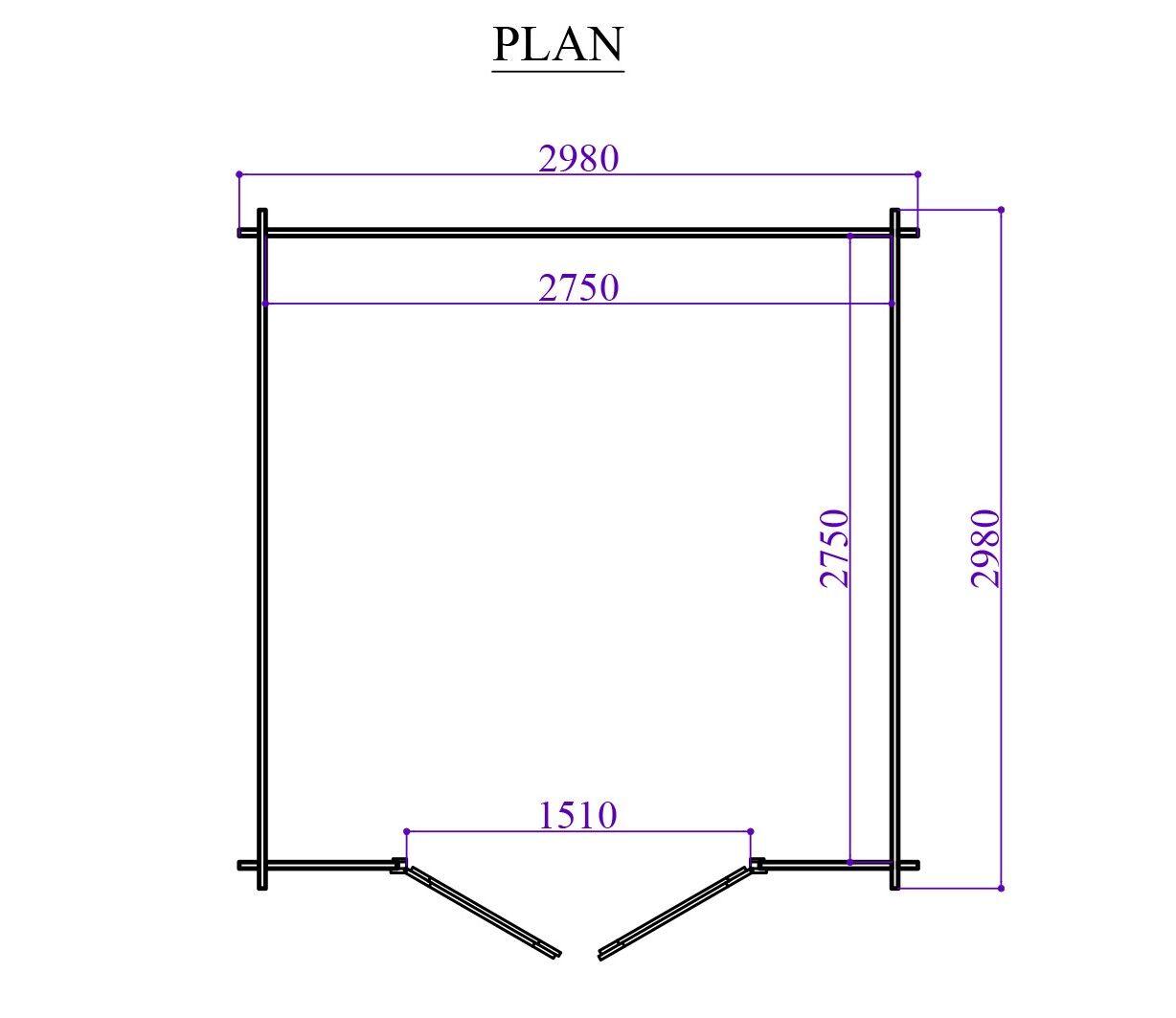 - Bohlenaußenmaß 298 x 298 BxT cm