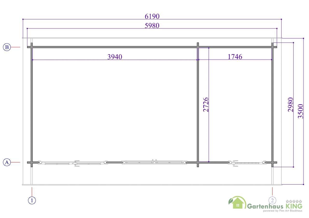 - Bohlenaußenmaß 600 x 300 BxT cm