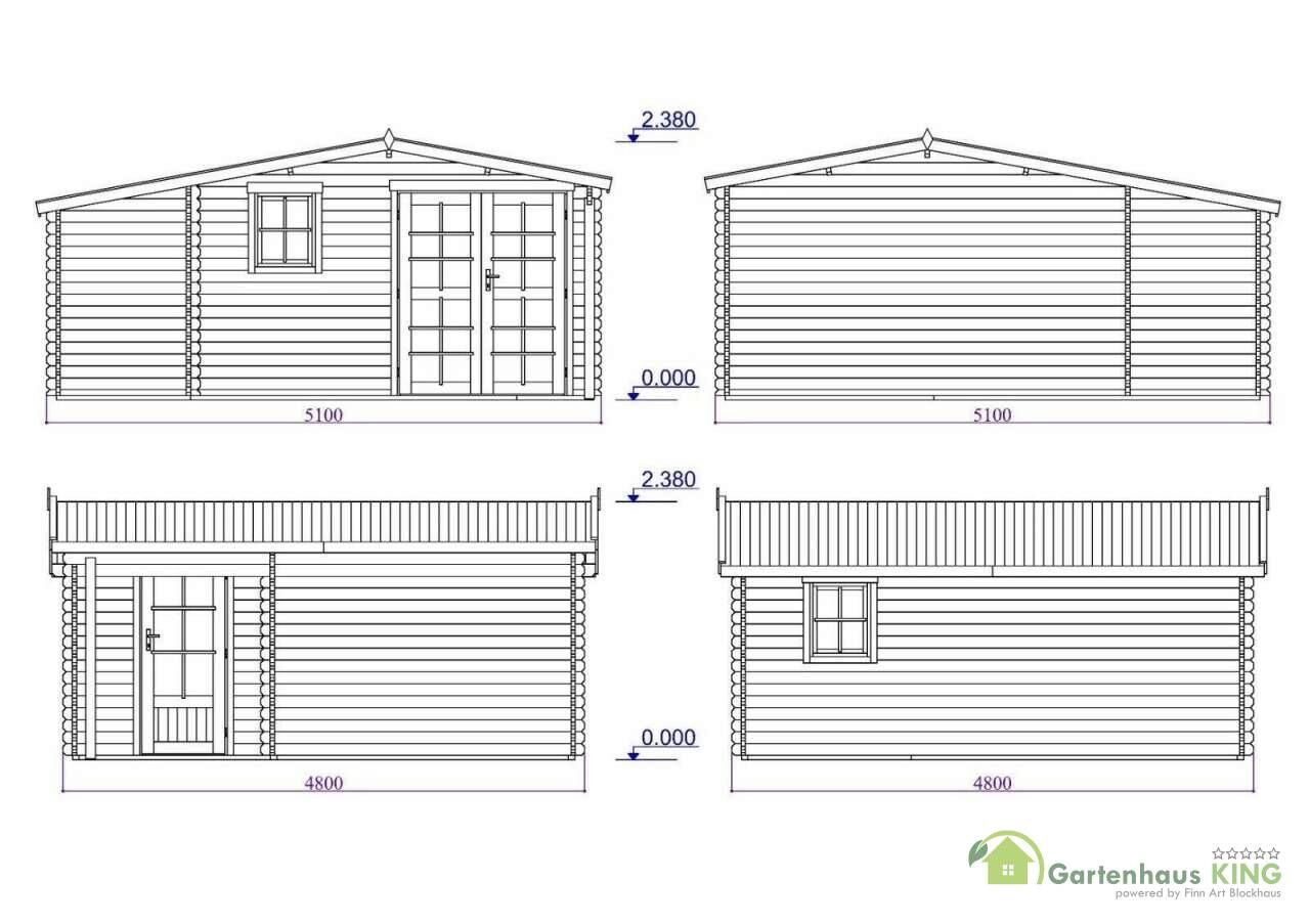 - Bohlenaußenmaß 510 x 480/298 BxT cm