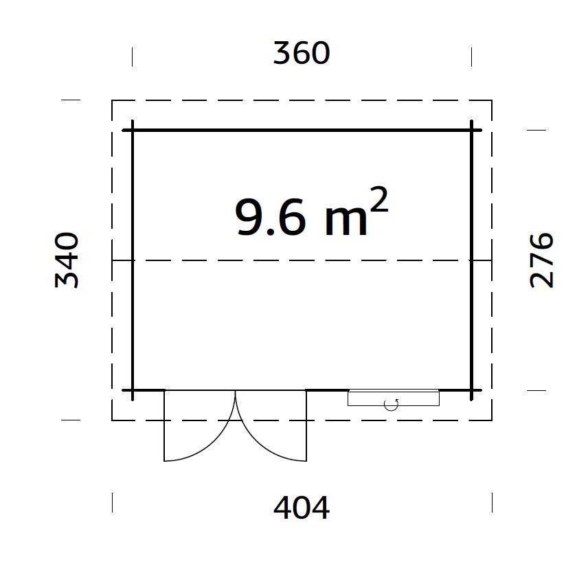 - Bohlenaußenmaß 380 x 296 BxT cm