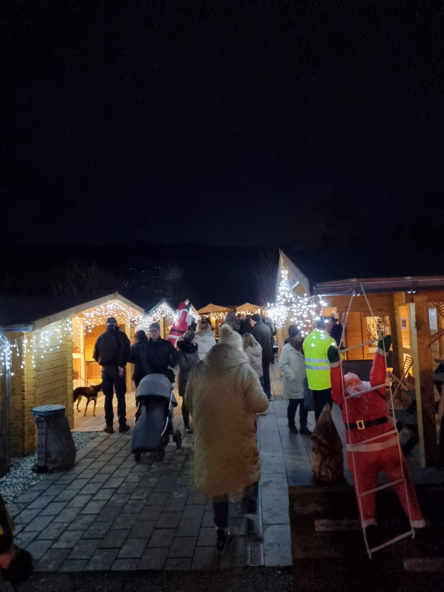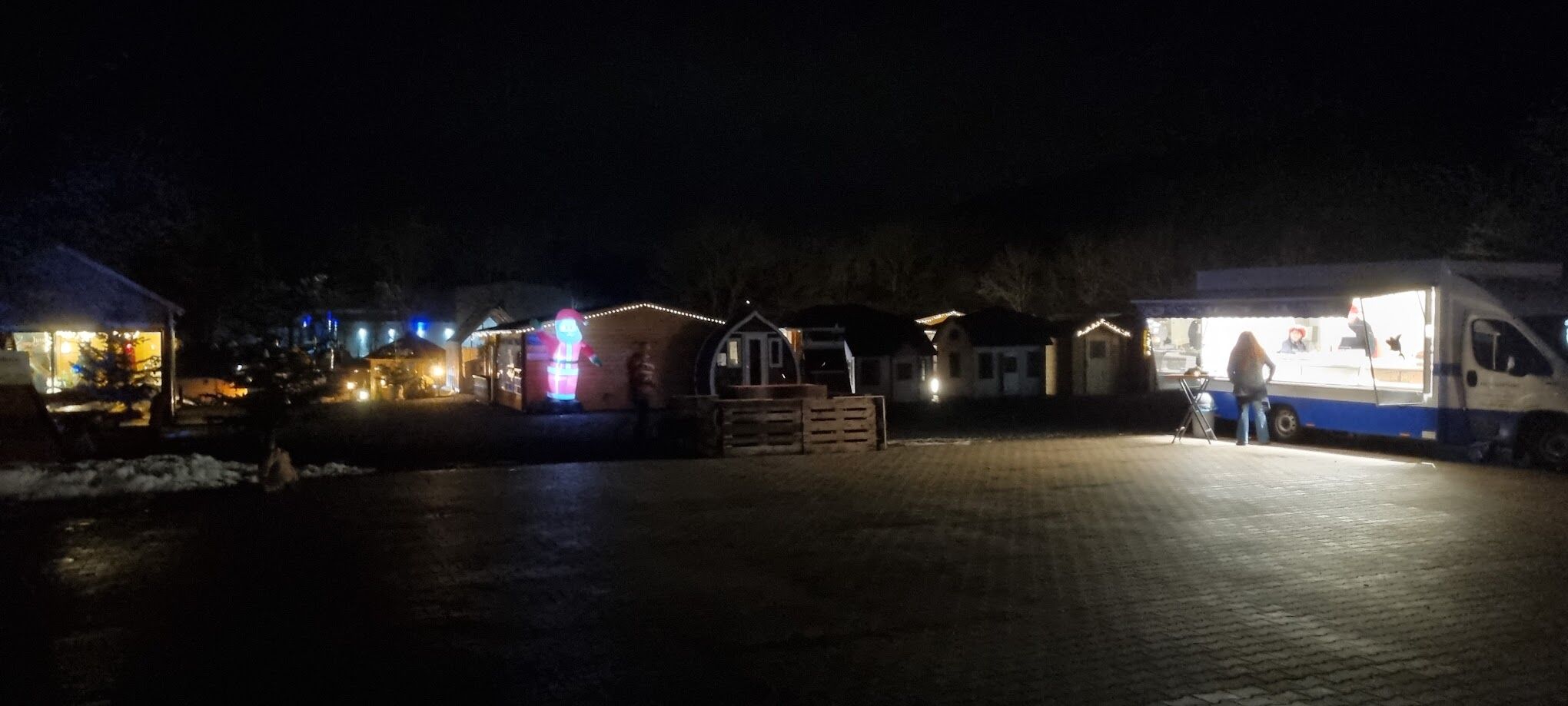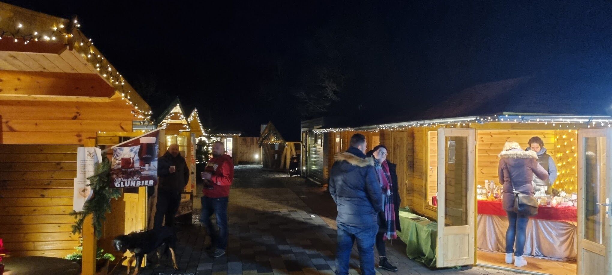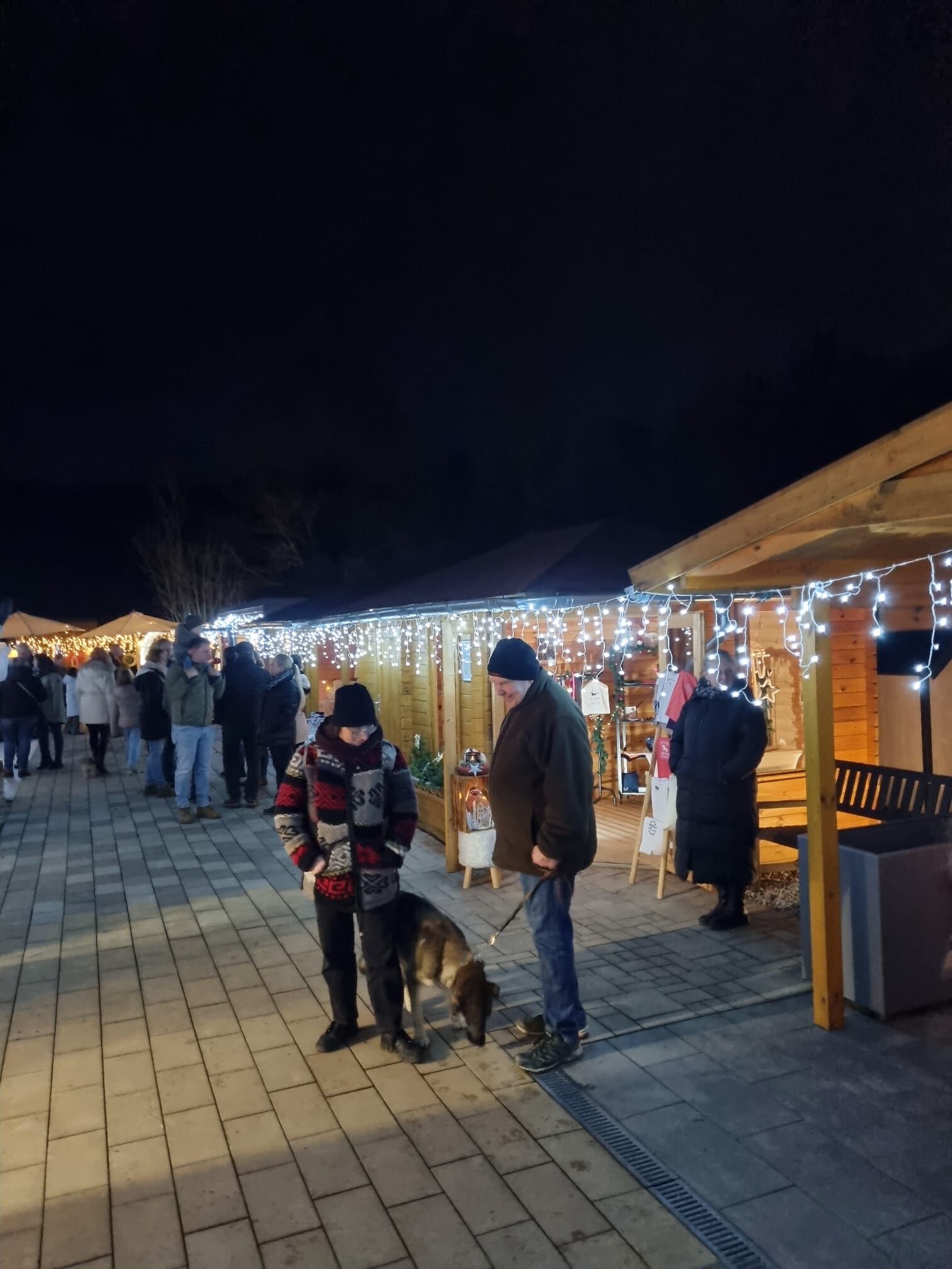 Bereits tagsüber war der Markt sehr gut besucht, doch mit einsetzender Dämmerung füllte sich das Gelände zusehends. Die Besucher strömten herbei, um die besondere Atmosphäre der weihnachtlich illuminierten Blockhäuser zu erleben. Das Zusammenspiel aus dem natürlichen Baustoff Holz, dem warmen Lichterglanz der Dekorationen und der liebevoll gestalteten Ausstellung schuf eine Kulisse, die viele Gäste zum Staunen brachte.