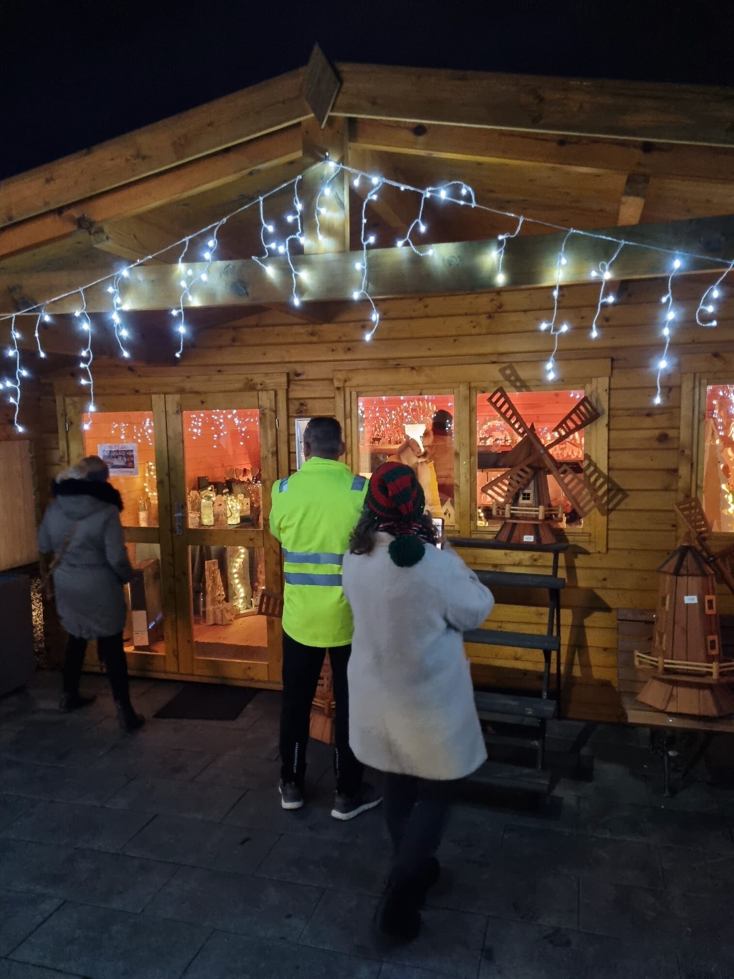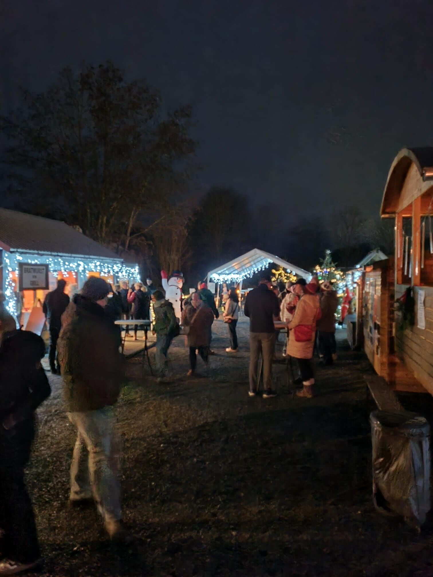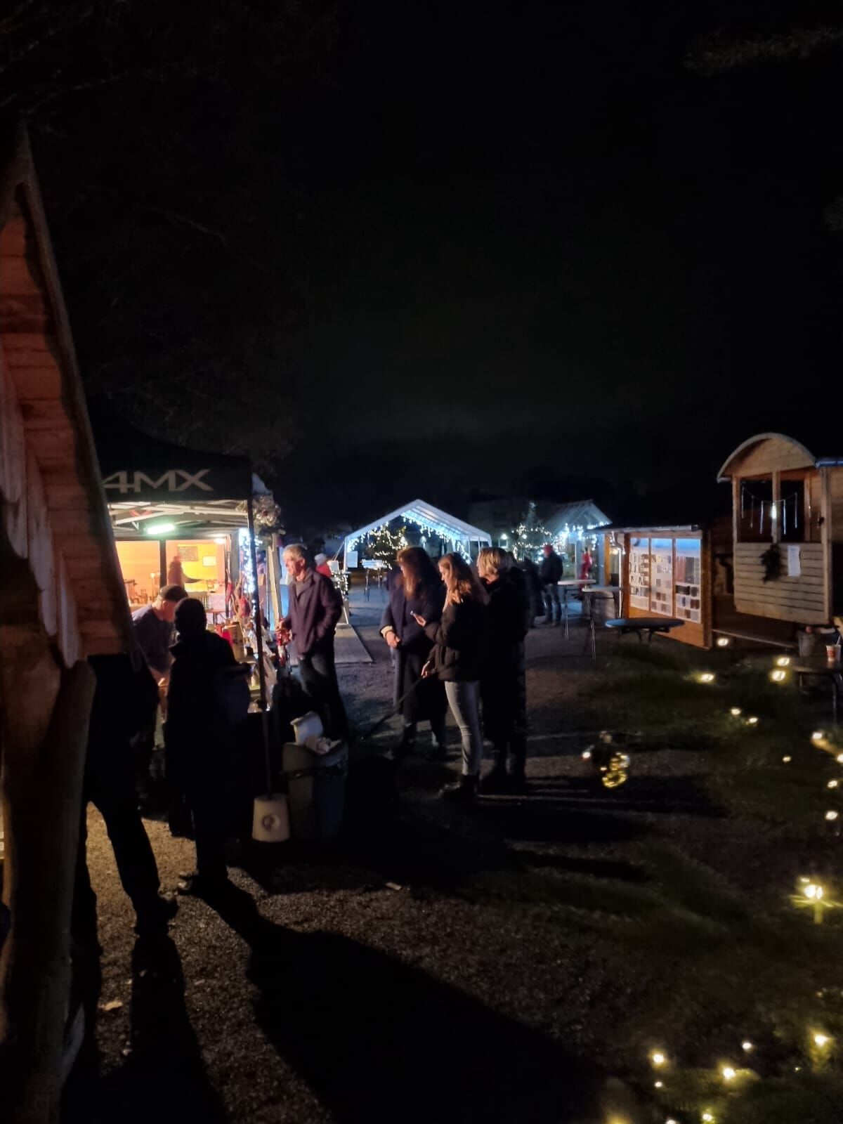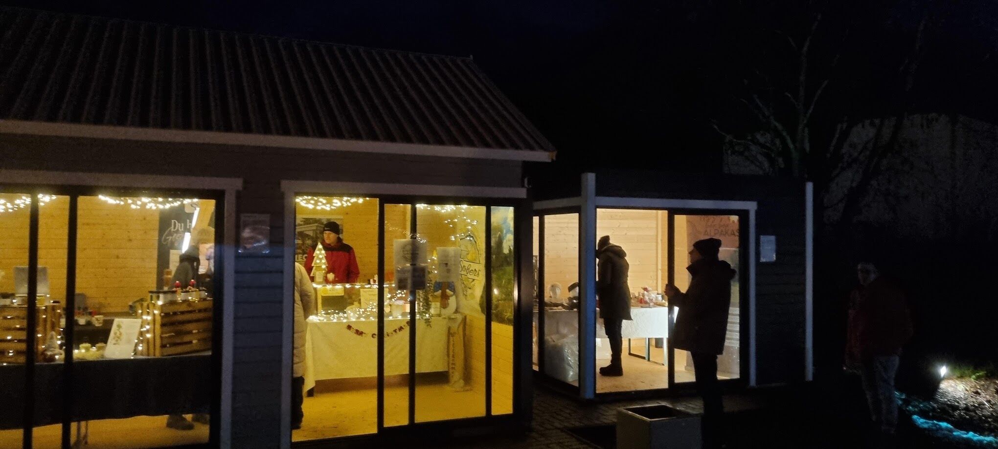 Bereits tagsüber war der Markt sehr gut besucht, doch mit einsetzender Dämmerung füllte sich das Gelände zusehends. Die Besucher strömten herbei, um die besondere Atmosphäre der weihnachtlich illuminierten Blockhäuser zu erleben. Das Zusammenspiel aus dem natürlichen Baustoff Holz, dem warmen Lichterglanz der Dekorationen und der liebevoll gestalteten Ausstellung schuf eine Kulisse, die viele Gäste zum Staunen brachte.
