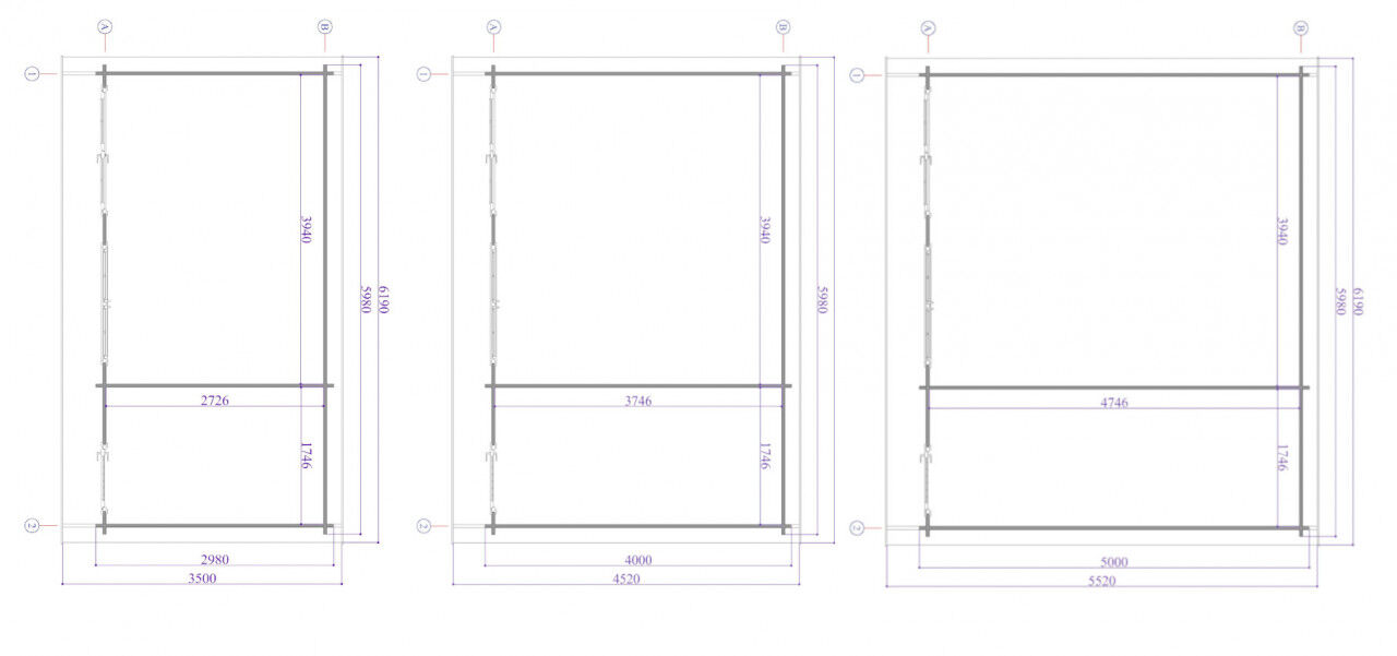 Einige Gartenhäuser gibt es als Variante A & B: das sind seitenverkehrte Aufbauten.