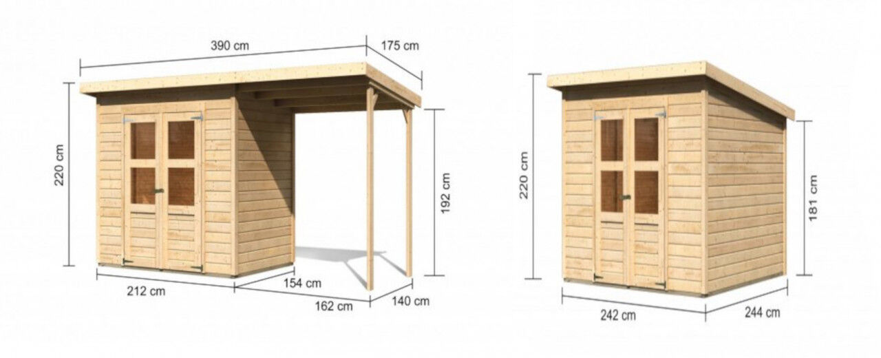 Die schlichte und gleichzeitig moderne Dachform ist eine häufig gewählte Bauweise. Der Name Pultdach Endstand durch seine Bauform. Die früheren Schulpulte waren geneigt und noch heute werden Rednerpulte in dieser geschrägten Form genutzt. Die einfache, schräge Bauart eignet sich hervorragend zum Begrünen oder um Solarplatten an ihr zu befestigen. Meist wird die Schräge in die Wetterrichtung gebaut, um so das Ablaufen des Regenwassers zu erleichtern. Überzeugen Sie sich selbst, von unserer großen Auswahl an Pultdächern. Auch beim Pultdach haben Sie die Möglichkeit durch die sogenannte Schleppdachbauweise zusätzliche Unterstell- oder Sitzfläche zu haben. Ein sehr gutes Beispiel ist unser Pultdach Gartenhaus Lasita Maja Novia Plus.